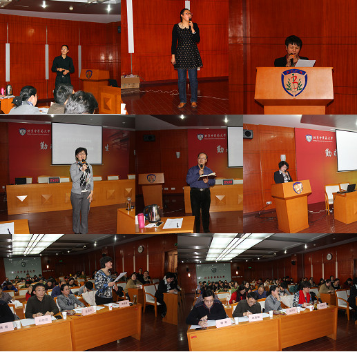 12月25日中午,评选会在博物馆二层报告厅如期举行,相关职能部门负责人以及各学院副书记、辅导员、班主任和学生代表参加了本次评选会。评委包括来自学工、招就、研工、团委的部门负责人和各学院的分管学生工作的党总支副书记。评选环节包括PPT展示和班级情况、学生工作理论与规范、情景模拟提问,参评老师中,有的从五个维度探讨班级管理制度,有的展示了以学风建设为核心的带班特色,有的用智慧和爱心营造出优秀的班集体,有的则着力于提高辅导员“附加值”的努力,评委的提问也得到了精彩的回答,老师们精彩的表现赢得了场内观众的阵阵掌声。最后,评委代表基础医学院党总支副书记范璐老师、针灸推拿学院党总支副书记侯中伟老师做了精彩点评。
