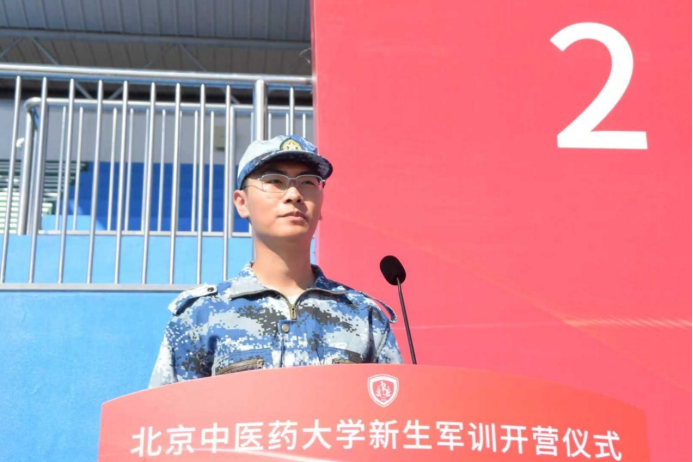 岐黄学院2025级领军1班王承儒同学作为军训学员代表发言。他表示,军训是大学赠予的第一份“成长礼物”,不仅磨练体魄意志,更蕴含“知行合一”的真谛和集体主义精神。全体新生将体悟中医药文化中的家国担当与德术兼修。他代表军训学员发出郑重承诺,一定以实际行动圆满完成军训任务。