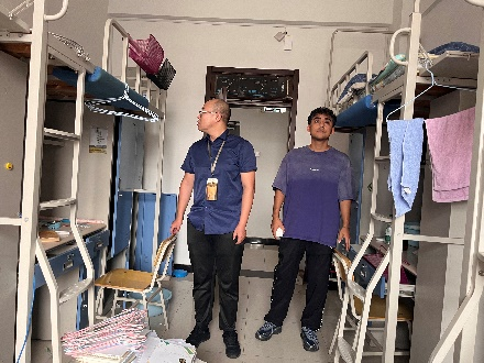暑假将至,为切实加强学生宿舍安全管理,落实北京市教委、北京市消防救援局《关于进一步做好校园消防安全工作的通知》,确保度过一个安全祥和的假期,学工部于7月12日,由副部长赵小虎与安稳科组成4人检查小组,开展了宿舍安全大检查。