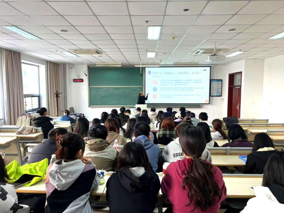 宣讲精心挑选了近期发生在我校学生身上的真实诈骗案例,进行了细致入微的剖析。详细阐述了刷单诈骗、熟人借钱陷阱、网络购物欺诈以及虚假兼职等常见诈骗手法,而且结合个人生活经验,分享了一系列实用的防骗技巧,诸如避免下载来源不明的APP,以及对待陌生来电保持高度警觉。赵小虎副着重提示,鉴于诈骗手法不断翻新,我们必须与时俱进,时刻保持警惕,切勿因一时疏忽而落入诈骗陷阱,以此为学生们敲响了防范电信诈骗的警钟。