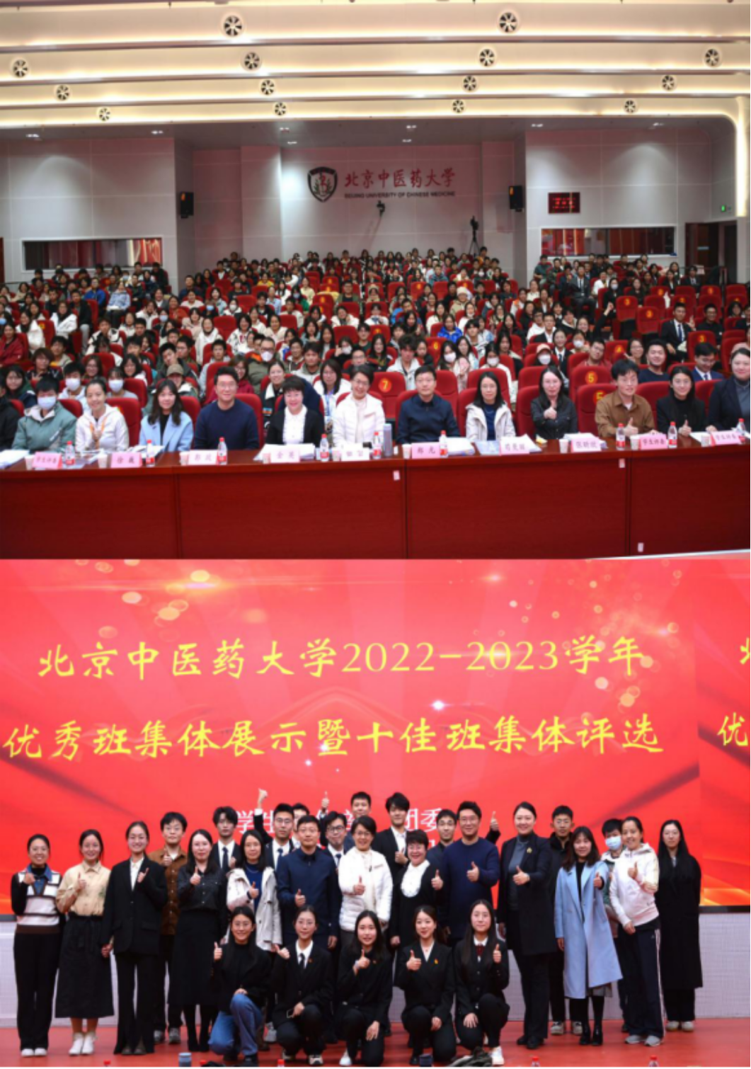 最后,学生工作部范璐部长总结发言,她向同学们提出了三点希望:一是珍惜荣誉,继续塑造团结协作的班级精神;二是发挥优势,所有获评十佳和校级优秀班集体的班级能够对更多班级产生积极影响,引领和带动更多同学共同成长,共同凝聚美丽的北中医校园文化;三是坚持奋斗,将优秀延续下去,永葆今日风采,镌刻青春回忆。