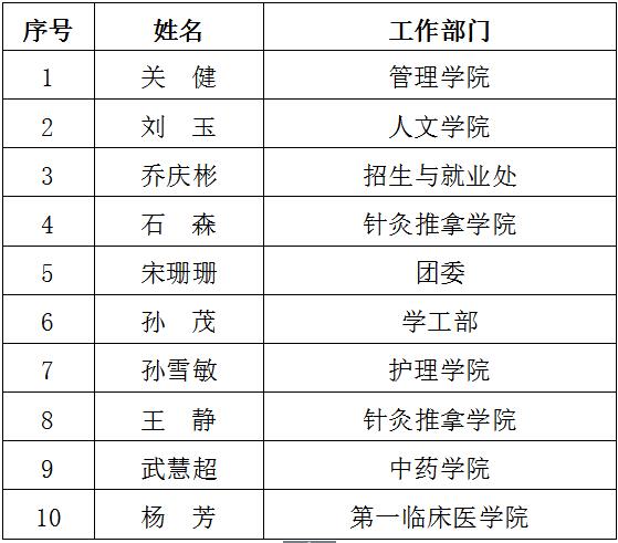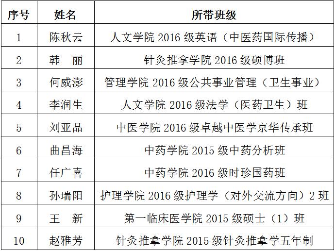 为深入贯彻落实党的十九大精神、全国思想政治工作会议精神,切实加强学校辅导员队伍和班主任队伍建设,提高我校学生工作水平,调动辅导员、班主任工作的积极性和创造性,推动学生工作再上新台阶,根据《关于开展2016-2017学年辅导员评优工作的通知》和《关于开展2016-2017学年全校班主任评优工作的通知》要求,经院校两级考评,现将我校2016-2017学年优秀辅导员和十佳班主任评选结果公示如下: