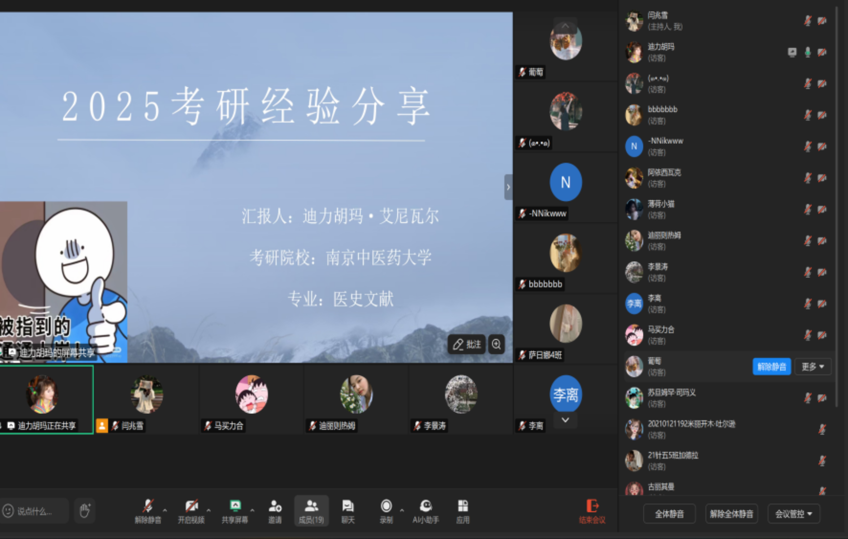 29日第二场分享拉开帷幕,中药学院的木力得尔・赛力克(即将踏入中央民族大学)与古丽米热・阿卜杜克热木(被北京协和医学院收入麾下),联合管理学院成功 “上岸” 本校的艾菲拉・阿卜杜拉,接力传递考研路上的宝贵经验。而管理学院的孜拉娅提・奴尔江,作为中央选调生,宛如职场灯塔,从就业维度切入,分享职业蓝图的精妙绘制、求职战场的决胜攻略,为迷茫中的学子点亮前行的明灯。