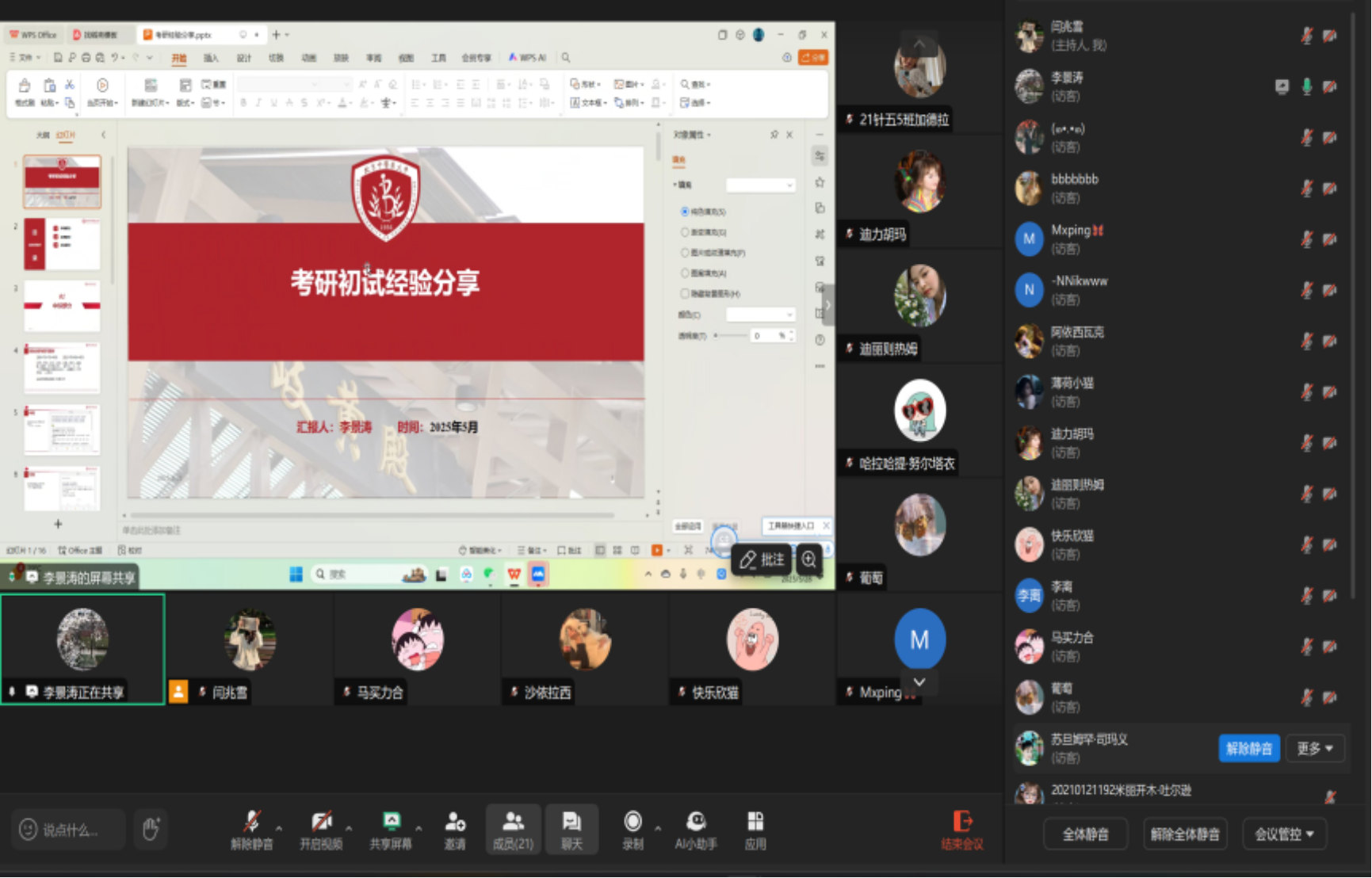 分享环节结束后,同学们踊跃互动,线上会场气氛炽热而活跃。大家围绕备考时心态的自我调适、跨专业考研的关键要点、就业信息的高效获取等问题各抒己见,进行了深入探讨。