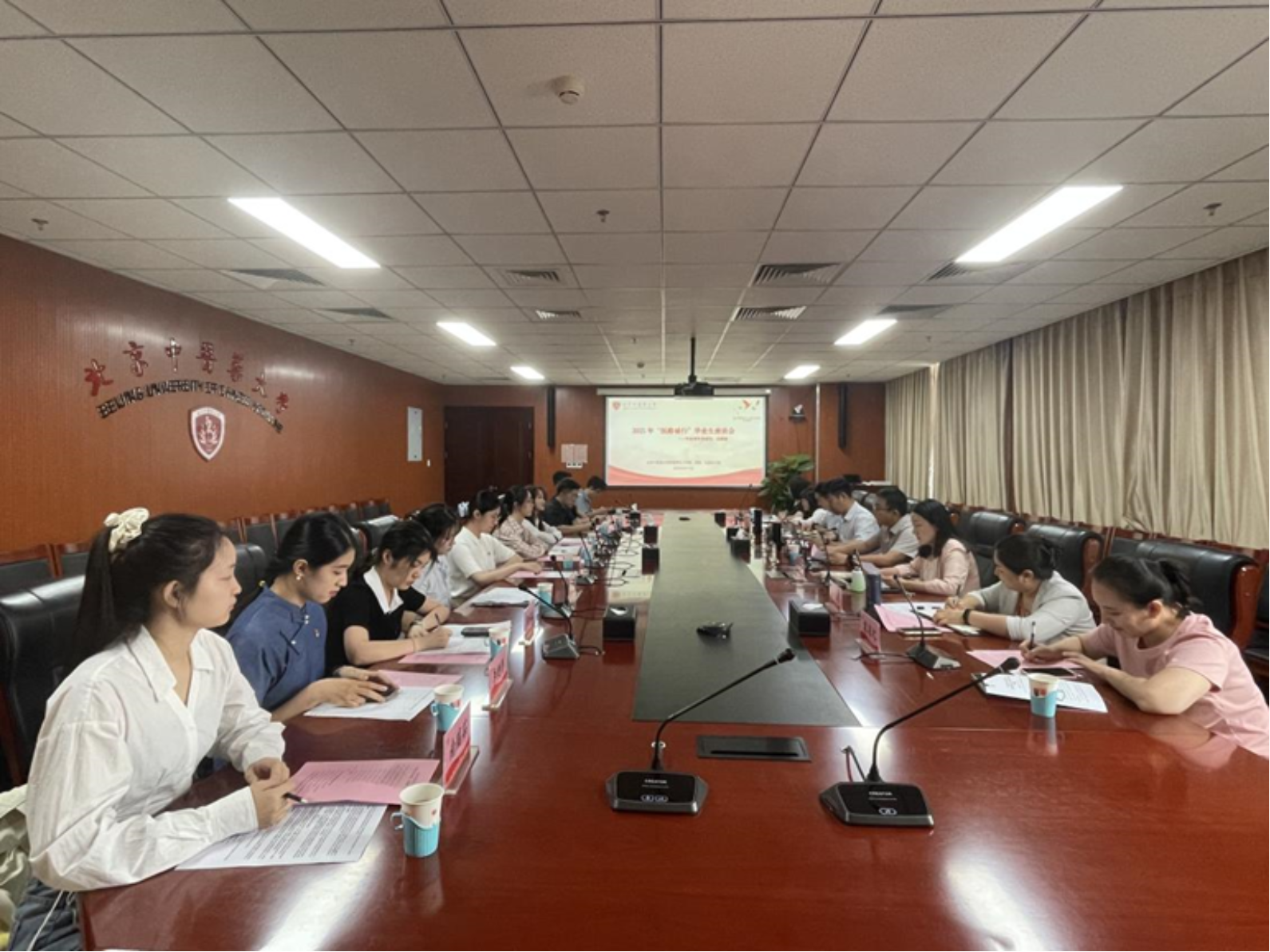 为持续深化中央八项规定精神学习教育,有力推动校园廉洁文化建设暨党风廉政宣传教育工作走深走实,2025年6月19日上午,校党委学生工作部和校团委联合在良乡校区举办2025年“医路诚行”毕业生座谈会。校党委副书记、纪委书记刘江平,学生工作部部长赵建磊、副部长徐巍、思政科科员李响,校团委副书记(主持工作)艾华,纪委副书记、纪委办公室主任杨永兴,纪委办公室副主任王惠莉、借调干部(学生辅导员)袁省之,以及毕业生代表齐聚一堂,畅叙情谊,共话廉洁诚信。座谈会由赵建磊主持。