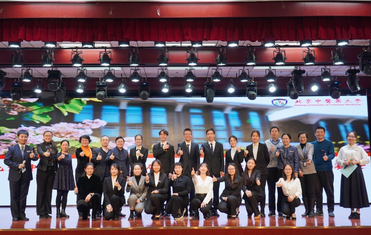 到场的嘉宾评委也对同学们给予了高度评价。良乡高教园区管委会主任路鹏老师肯定了同学们在各方面取得的优异成绩,他希望同学们作为新时代大学生、作为杏林学子,要始终将树德放在首位,自觉践行社会主义核心价值观,不断养成高尚品格。路老师还以一首原创藏头诗给北中医青年以高度的赞扬:“学思广博谱华章,业精于勤志高昂;有为青年守初心,成才可期在岐黄。”北京工商大学学工部部长吕良老师也为北中医的青年点赞,他同时号召参赛同学用青春正能量影响广大杏林学子勤奋学习,孜孜不倦,不断追逐青春梦想。