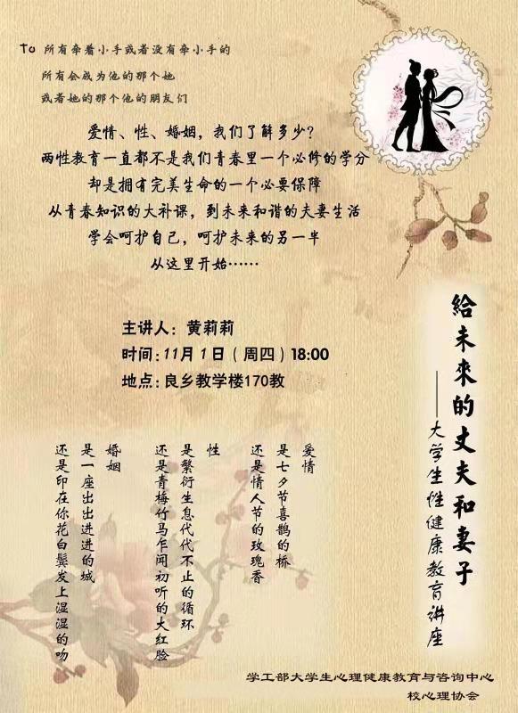 “给未来的丈夫和妻子”——大学生性健康教育讲座预告通知