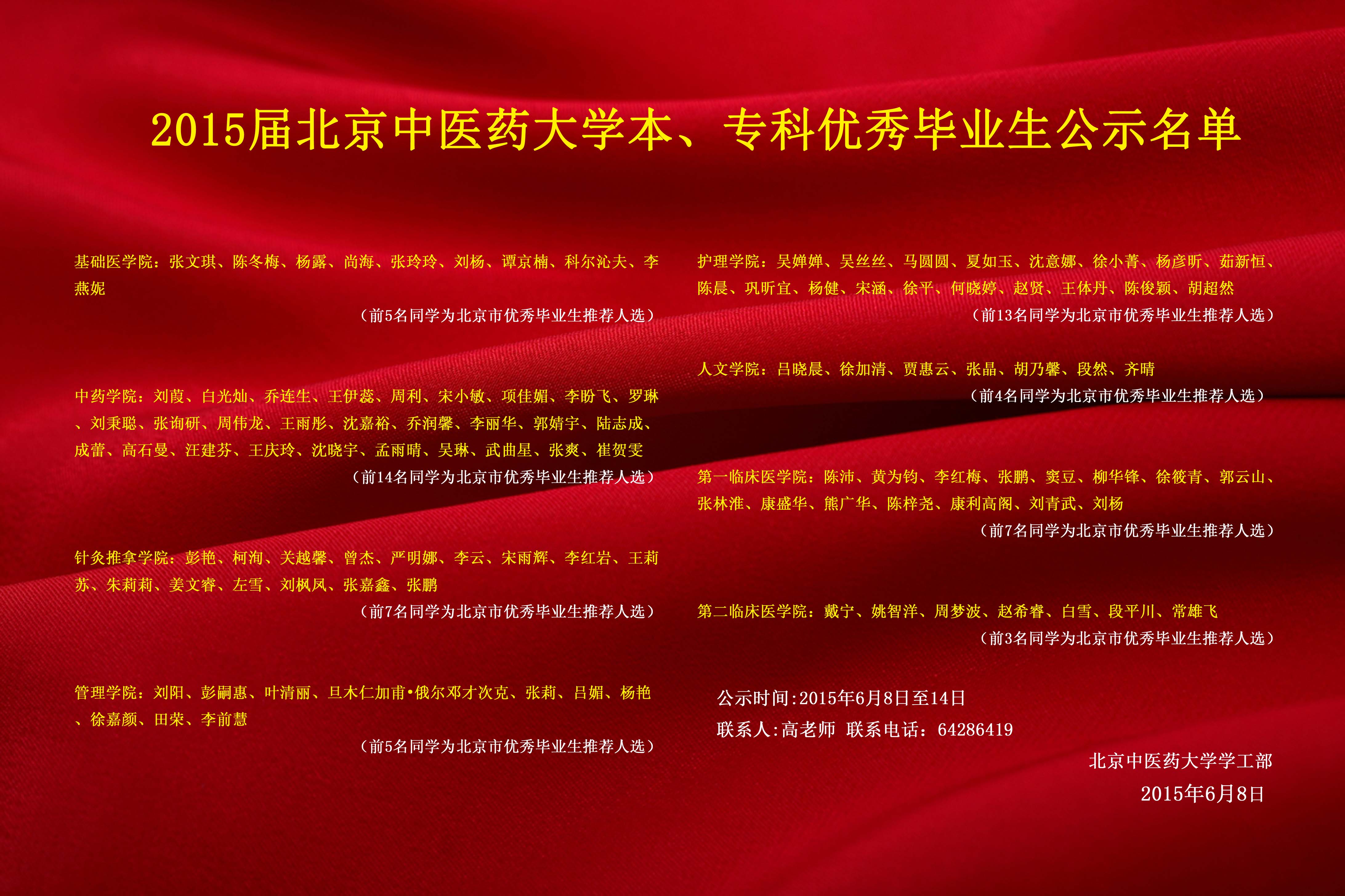 2015届yl6809永利线路检测本、专科优秀毕业生公示名单