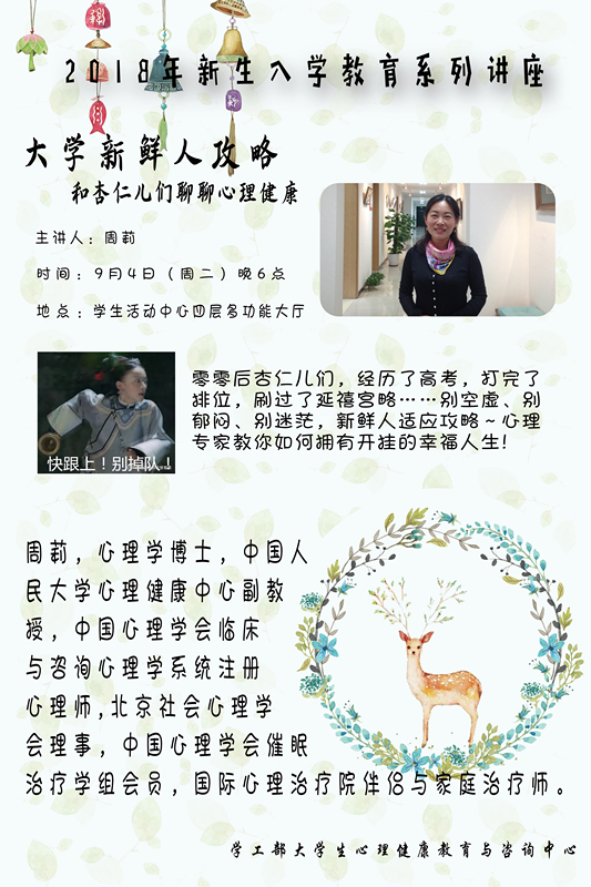2018年新生入学教育系列讲座之大学新鲜人攻略:和杏仁儿们聊聊心理健康