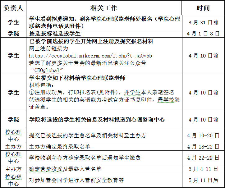 四、报名:请各学院4月10日前将选拔的学生相关信息及材料报送至心理咨询中心