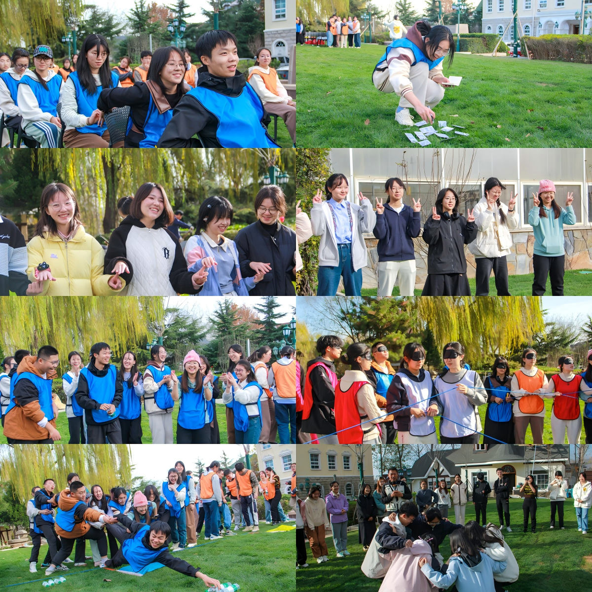 “蛟龙出海”,高驰冲天,在“蛟龙出海”环节中,每队12名队员合而为一,通过束缚带将彼此的双脚捆住,手挽手、肩并肩,喊着响亮的口号整齐划一冲向终点,在一次次尝试、沟通与失败中,大家逐渐找到节奏,随着正式比拼的哨声响起,四条蛟龙齐出征,响亮的口号此起彼伏,每位队员都高度集中注意力,避免被隔壁队伍带偏节奏,在这场“蛟龙出海”的 激烈竞争中,大家深刻体会到了团队协作的重要性;在束缚中寻找自由,在黑暗中寻找光明,在“盲人方阵”环节,大家打破团队分组的界限,化作一个大集体,在不能说、不能看的情况下,集思广益,同心协作,在这场“盲”目的智慧之旅中,沉浸式体验倾听、沟通与合作的力量。