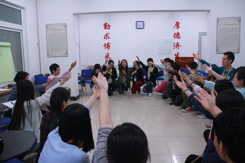 活动一开始,张老师首先带领大家做了一个破冰小游戏——向至少三位搭档夸赞自己,游戏迅速拉进了大家的距离,现场氛围快速活跃起来。接着,张老师讲解了沟通由浅入深的五个层次:打招呼、谈事情、说看法、分享感受、敞开心扉,并让大家思考成功沟通应有的层次。为更好地阐述萨提亚的五种沟通方式:讨好型、指责型、超理智型、打岔型、一致性,张老师与现场同学表演情景剧,生动演绎五种不同沟通方式的姿态和心理,使同学们更好地理解了每种沟通方式背后给自己和对方带来的感受。然后,张老师还分享了萨提亚的冰山理论,这个理论认为在人的行为和应对方式表象下面,依次有“感受”、“观点”、“期待”、“渴望”、“自我的本质精神和生命力”的根源问题,倡导与人沟通时的一致性,要学会接纳自己、内心和谐、满足自己的渴望,也要不断地接纳别人,达到沟通双方的“冰山”一致性。此外,张老师还通过游戏,告诉同学们沟通中倾听和不断核对的重要性。最后,现场同学一一表达了此次体验坊的感受:开心、成长、共情、高自尊……等。张老师生动有趣的活动风格,让现场笑声连连,三个多小时的精彩体验让人身心愉悦,大家对此次活动非常满意。