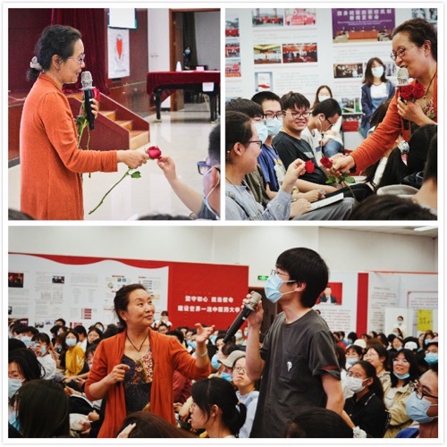 性教育对于大学生来说是一个重要且必要的内容,却常常被大家所忽视。黄莉莉老师用生动形象、引人入胜的语言讲解性健康知识,同学们听的认真、专注。在活动现场,黄老师邀请了三对男女同学进行现场互动,用“粘胶带”的方式模拟了性关系,在轻松快乐的游戏当中引发大家思考;她用凋零的玫瑰花瓣代表青春的人生一个个错误的决定,启发同学们正确的决定对于婚姻和人生的重要意义。