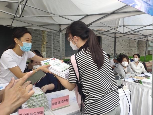 绿色通道”的顺利运行,离不开学校的大力支持,谷晓红书记更是亲临现场为新生发放了“爱心资助包”,并对学子们进行了亲切的问候,鼓励他们认真学习、为学校争光添彩。考虑到疫情下的大学生活,本次“爱心资助包”在充分调研后,选取了日常生活用品、运动用品、学习用品等同学们实际需求的物资,同时还包含了800元“爱心助学金”礼券。除此之外,北中医自强社的志愿者们还在现场对自强社的活动进行了宣传,鼓励接受资助的同学们加入自强社,共同奋进,通过社会实践、志愿服务等活动,实现从受助到自助、助人的转变。