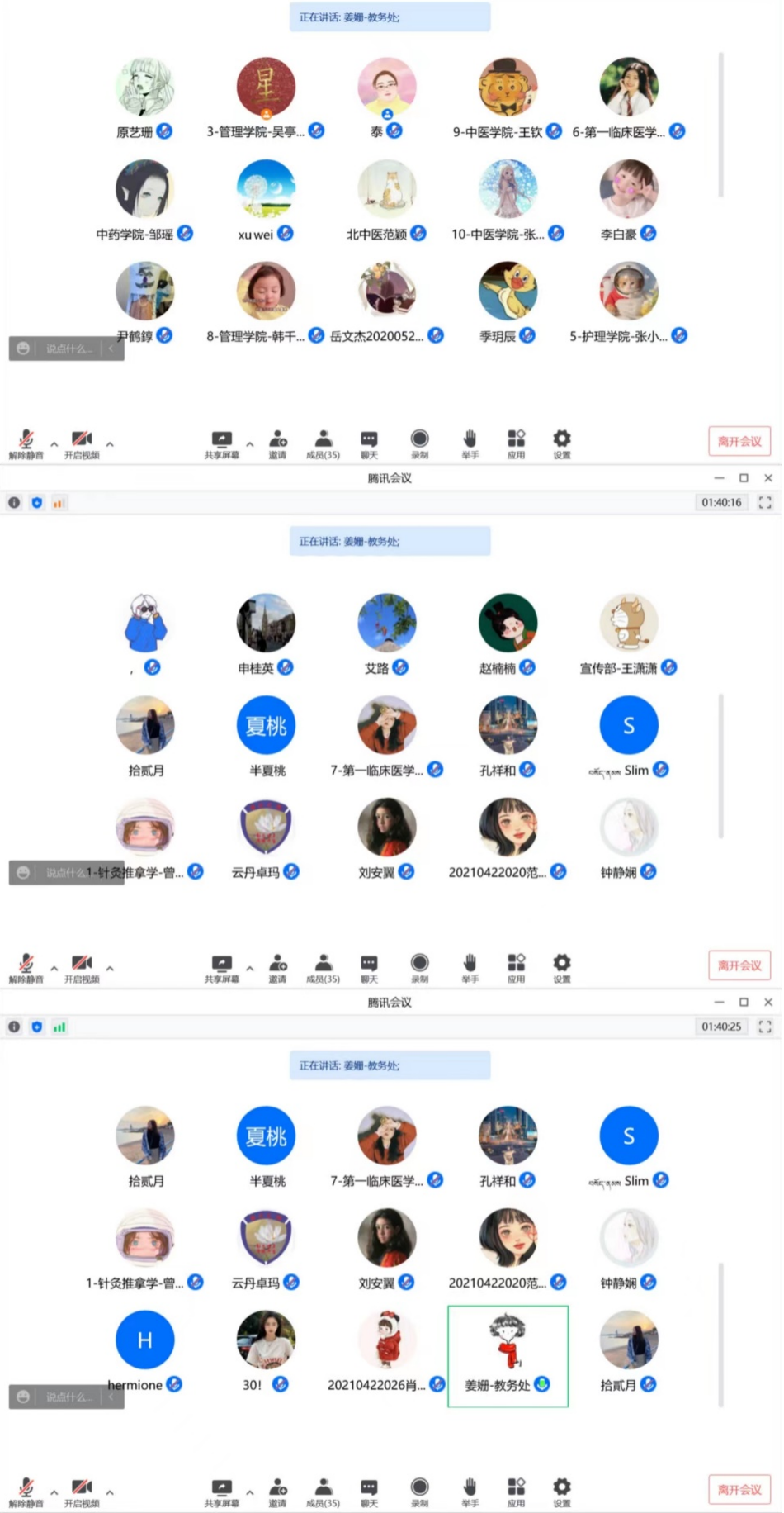 王潇潇老师用习近平总书记的话激励同学们:“希望全国广大青年牢记党的教诲,立志民族复兴,不负韶华,不负时代,不负人民,在青春的赛道上奋力奔跑”。姜珊老师提出:希望同学们发挥中医学子的优势,更好的投入到社会服务中去。艾路老师强调“青年中医药学子强则中医药强”,希望同学们带领中医药学子一起向未来!闫兴丽老师鼓励同学们将温暖与爱传承传递。