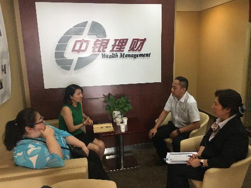 2018年7月16日,我校学工部副部长艾华老师、学生资助管理中心高笛老师及孙茂老师,一同前往中国银行望京西路支行就国家助学贷款相关事宜进行调研。中国银行望京西路支行行长海兴晨及助学贷款主责人刘海英对我校一行人员进行了热情接待。
