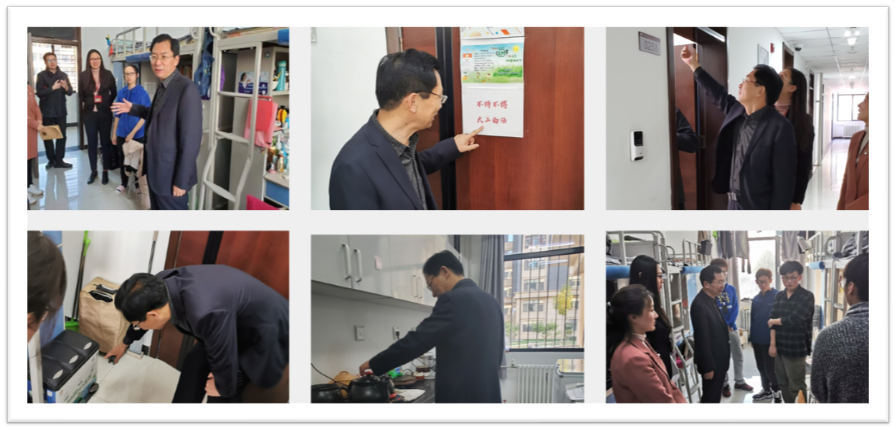 王耀献副校长首先来到良乡校区东院人文学院学生宿舍,亲切慰问学生并详细了解公寓住宿条件及同学们的生活情况。走访过程中,王校长与学生们亲切交谈,他细致询问了学生们对大学环境、宿舍环境的想法,及时掌握了学生们的心理状态和思想动向。王校长对学生们共同维护和保持干净整洁的寝室环境表示肯定,并对学生普遍关心的宿舍问题进行了耐心的解答。最后,王校长表示学校非常关心大学生的学习和生活,会不断改善学生生活、学习条件,欢迎同学们积极向学校建言献策。