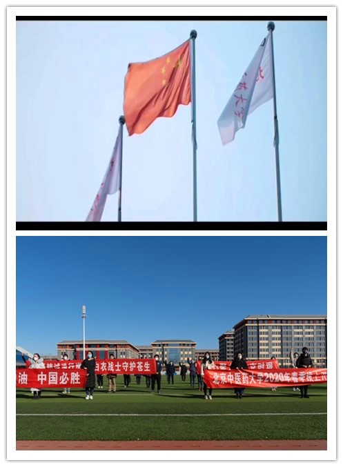 随着国歌声响起,庄严的升旗仪式拉开了这次别样开学典礼的序幕。现场师生与网络端的同学们一起肃立行注目礼。飘扬的五星红旗,激昂的国歌,点燃了师生的热情,尽管疫情肆虐,但危难时刻,全体北中医师生的心却紧紧团结在一起,面对灾难,北中医人的爱国之情更炽烈,求知之心更深切。