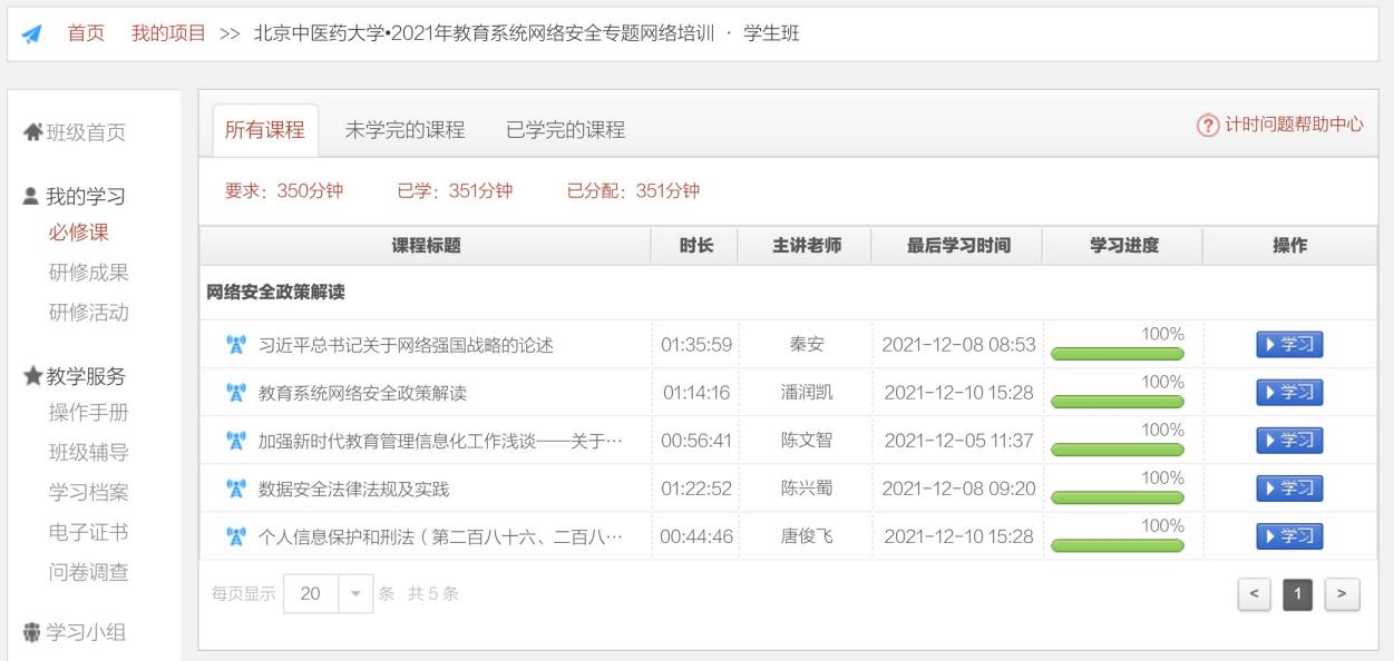 结合目前新冠疫情防控形势,本次专题培训采取线上课程学习的方式,线上培训由课程学习、主题研讨、心得撰写三个环节组成,课程内容围绕“网络安全政策解读”、“网络安全形势分析”、“网络安全工作实践”等方面开展,课程采用理论结合实际案例的方式,为参与培训的学生安全员生动地讲解了网络安全的方方面面。共有来自各个学院的114名本、研学生安全员完成了线上课程学习,学生表示收获颇丰,会将学习到的理论应用到平日的实践中,更好地服务于我校师生。