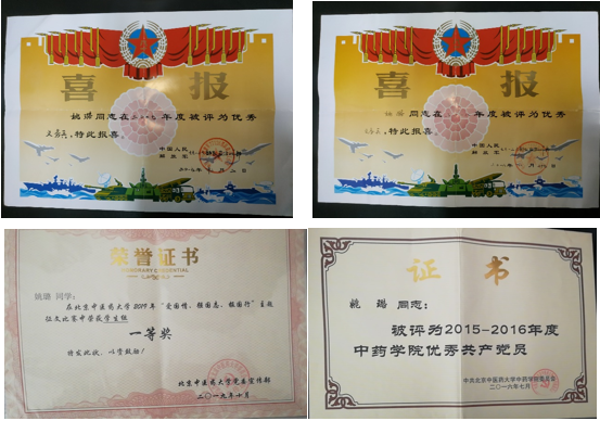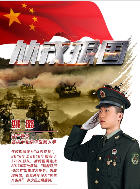 近日,由北京市人民政府征兵办公室、北京市教育委员会联合组织的北京市优秀在校退役大学生士兵评选活动落下帷幕,来自京内64所高校的在校退役大学生士兵,先后经过资格审核、专家评审、述优答辩等环节的激烈角逐,最终有30名表现优异的退役大学生士兵脱颖而出,被评为“北京市2020年优秀在校退役大学生士兵”并予以表彰公示。其中,我校推选参评的14级生物制药班姚璐同学,凭借自身过硬的素质和优异的表现,成功获此殊荣。