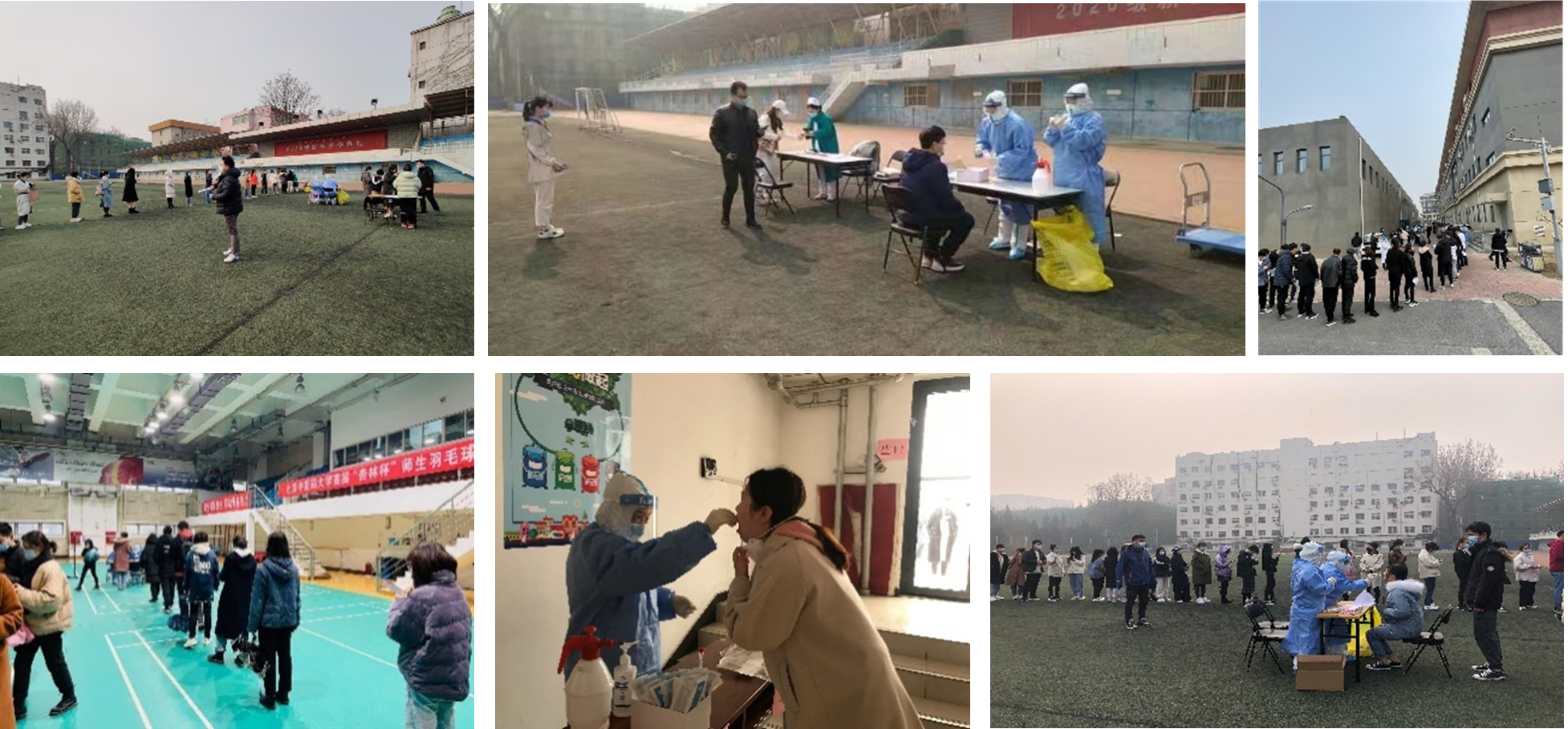 为了进一步做好校园常态化疫情防控工作,根据北京市疫情防控工作要求,落实好春季学期学生返校后的健康监测及京外学生抵京返校后满7天和满14天的核酸检测工作要求。2021年2月26日至3月15日期间,学工部、团委协同党校办、校医院、三附院、保卫处、后勤处、体育教学部等有关部门在良乡校区、和平街校区集中组织开展了多次核酸检测工作。