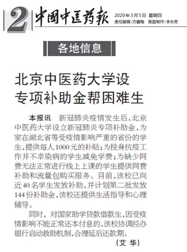 为此,中国中医药报专门报道了我校的资助工作举措。全文如下: