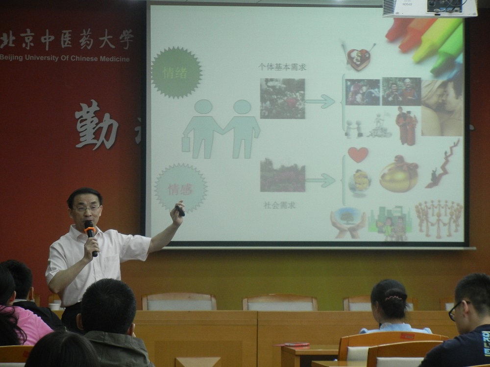 2015年5月6日下午,第十一届心理文化月系列讲座之《在大学遇见未知的自己——大学生情感与成长》在中医药博物馆二楼报告厅顺利举办,本次讲座特别邀请到了著名中医心理学专家、广安门医院副院长汪卫东教授。学工部李玮副处长、心理咨询中心老师及部分辅导员、班主任也参加了此次讲座。