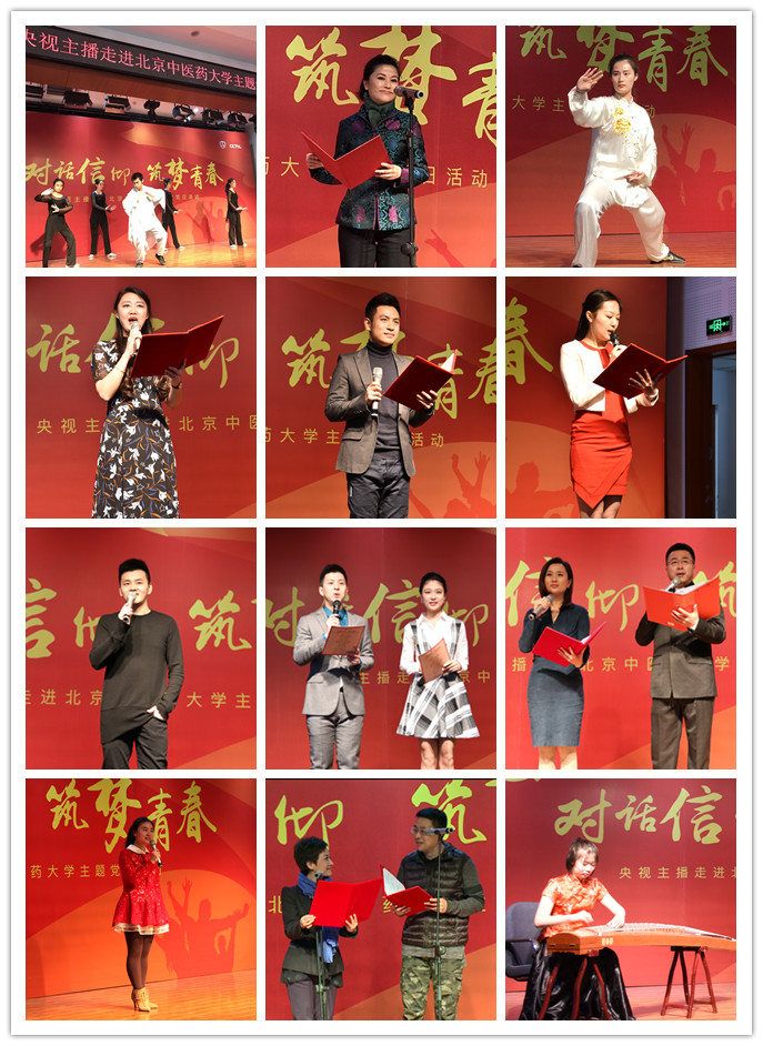 为强化党员党性观念和宗旨意识,进一步提高党员素养,激励党员树立崇高理想和坚定信念,巩固和加强基层党组织力量,我校学生工作部党支部与中央电视台新闻中心新闻播音部党支部于12月23日下午在和平街校区教学楼三层报告厅成功举办了“对话信仰,筑梦青春”主题党日活动。出席本次活动的有校党委副书记、副校长翟双庆,组织部部长曾凤,机关党委常务副书记、机关事务处处长欧阳方,学生工作部部长、学生工作部党支部书记杜伟,招生与就业处处长田润平,后勤处处长梁军,人文学院党委书记林建平,研究生工作部副部长、研究生院副院长傅骞,团委书记李天罡,中药学院党委副书记艾路,护理学院党总支副书记牛慧君等校方领导及我校辅导员老师和同学们。来自中央电视台新闻播音部的嘉宾有著名主播贺红梅、崔志刚、纳森、经蓓、和佳、何岩柯、严於信、王言等。