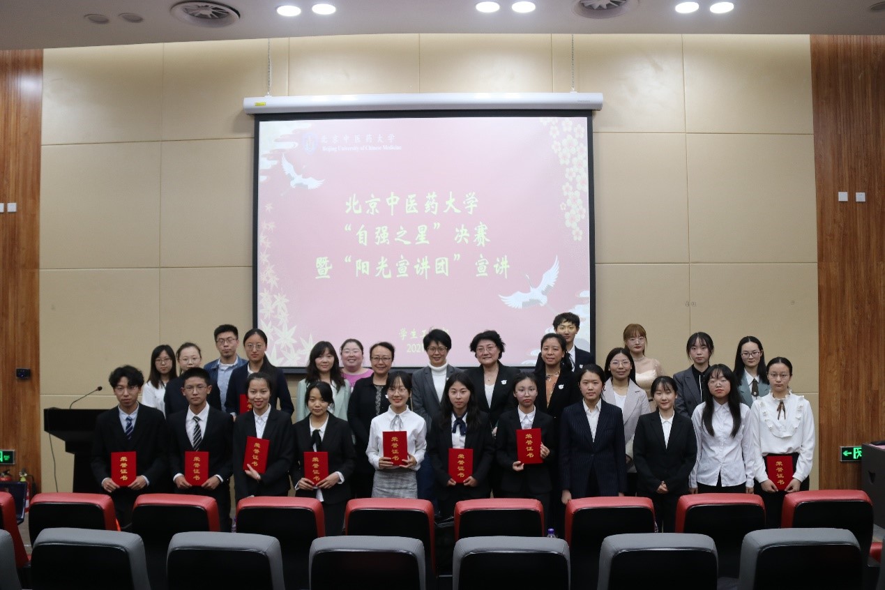 随后,第七届“自强之星”温馨,作为“阳光宣讲团”嘉宾来到答辩现场,她分享了获得“自强之星”后的心路历程,也对本届选手们的精彩表现表示赞誉。最后,来自我校职能部门的评委老师们对选手的赛场表现进行了精彩的点评:参赛选手充分发挥了北中医优秀学生的典型示范作用,是引导青年学生刻苦学习、自立自强、奋发成才的模范引领,希望每一位北中医学子都能够秉持自立自强的精神,勤奋刻苦,学以致用,为祖国中医药事业发展做出贡献。至此,第八届“自强之星”评选活动圆满完成,比赛结果及获奖名单如下: