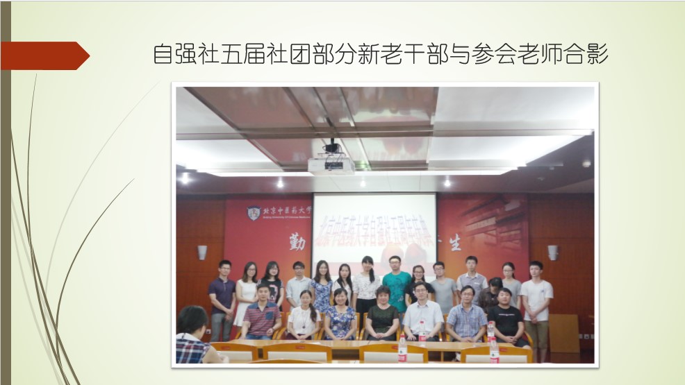 2015年5月29日晚,在逸夫馆二层报告厅组织了“自强社”成立五周年纪念活动。团委书记傅骞、学工部副部长佟晓辉、指导教师张美琦、社团联合会副主席林羽以及历届“自强社”骨干代表参加了此次活动。