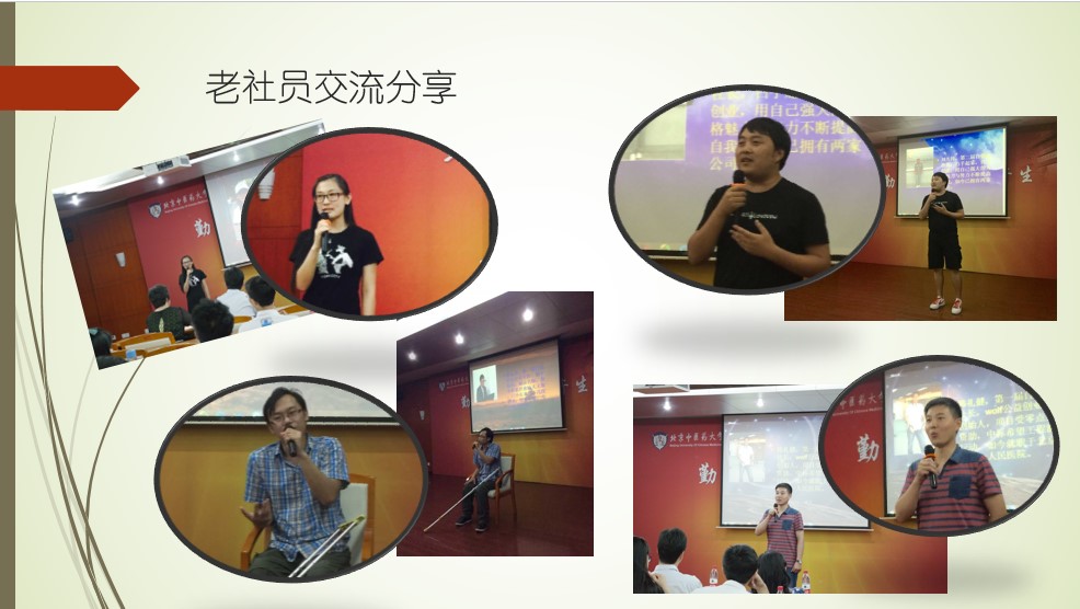接下来的新老社团成员联谊更是精彩纷呈。办公室、培训部合作的情景剧《隐形的翅膀》,讲述了同学们的兼职经历;素拓部、科研部合作的创意小品《六味地黄丸》,展现了团队的力量;公益部的手语《感恩的心》,表现了自强社自助不忘助人的担当;东校区社员的诗朗诵《命运与挑战》,展现了贫困生不屈不饶的意志。此外,历届“自强社”骨干代表的交流也让同学们收获颇丰。赵丽、韩礼建、陈永太、刘久伟、王家栋、田荣依次与同学们进行了交流,他们有的成功就业,热爱工作尽职尽责;有的抓住机遇,坚实迈出创业步伐;有的苦学医术,治病救人小有名气;有的在读成绩优异,综合提升自己。他们以自己的亲身学习、工作、创业、行医、保研等经历,使同学们感受了坚定的信念与榜样的力量。