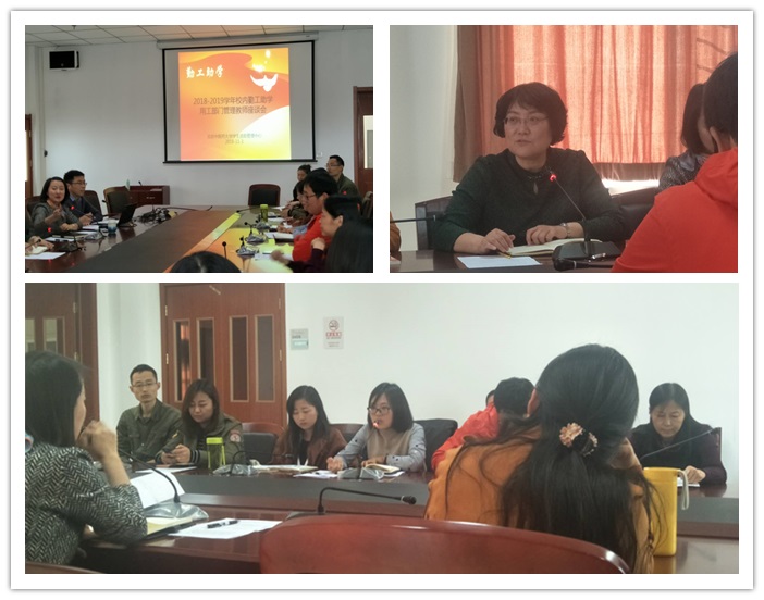 2018年11月1日下午,学生工作部学生资助管理中心召开勤工助学管理工作研讨会,学工部部长李玮、资助管理中心老师及各勤工助学用工单位管理人员出席了本次会议。会议由学工部副部长艾华主持。