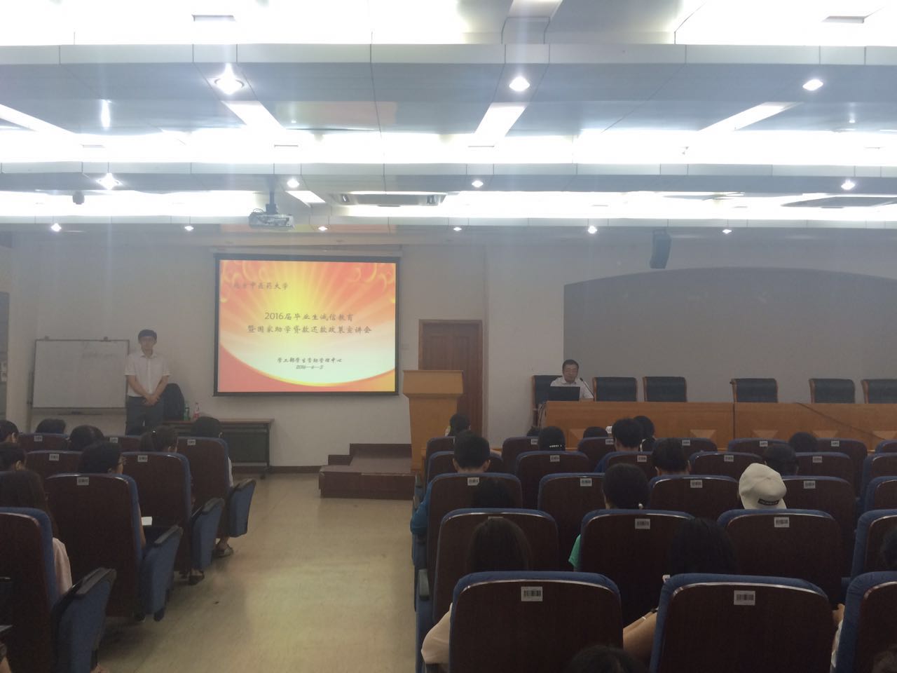 6月3日,学工部学生资助管理中心在博物馆一层报告厅举办了2016届毕业生诚信教育暨国家助学贷款还款政策宣讲会,旨在强化学生诚信还款意识,进一步做好国家助学贷款还款工作。中国银行樱花东街支行行长、中国银行朝阳支行行长、中国银行相关业务负责人、学生资助管理中心孙茂老师及2016届贷款毕业生参加了本次宣讲会。