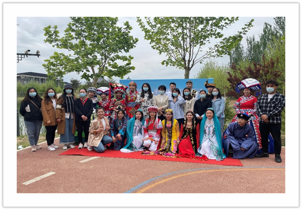 随后,2021及少数民族预科班学生身着藏族、回族、维吾尔族、白族、傣族等精美服饰进行了民族服装的展示,宣讲各民族风土人情故事。她们随着动人的音乐,跳起民族舞,与现场各位领导老师和各民族学生进行热烈互动,将启动仪式氛围推向了高潮。