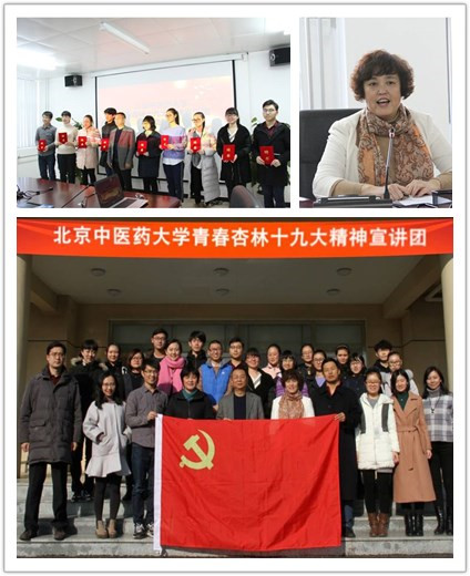 2017年12月1日中午,yl6809永利线路检测“青春杏林十九大精神宣讲团”启动仪式在良乡校区顺利举行。校党委副书记、副校长翟双庆出席了本次仪式,良乡校区综合管理办公室主任傅骞、学工部副部长佟晓辉、保卫处副处长李维峰、团委良乡校区负责人宋珊珊、宣讲团中的辅导员和学生成员们参加了本次仪式。启动仪式由学工部部长杜伟主持。