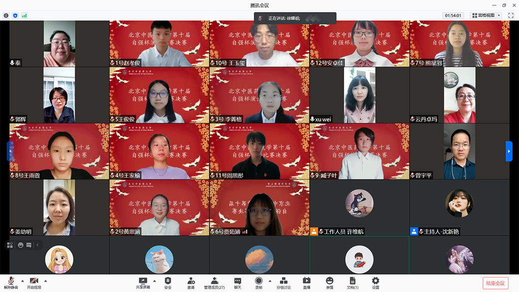 6月22日下午,第十届“自强杯”演讲比赛决赛以线上角逐的方式拉开序幕。来自6个学院的12名优秀选手进入本次决赛,校统战部部长郭辉,校友会、教育基金会秘书长闫兴丽,宣传部副部长曾宇平,研究生院副院长姜幼明,教务处副处长薛培,学生工作部副部长徐巍担任本次比赛的评委,比赛由学工部学生资助管理中心主办,自强社承办。