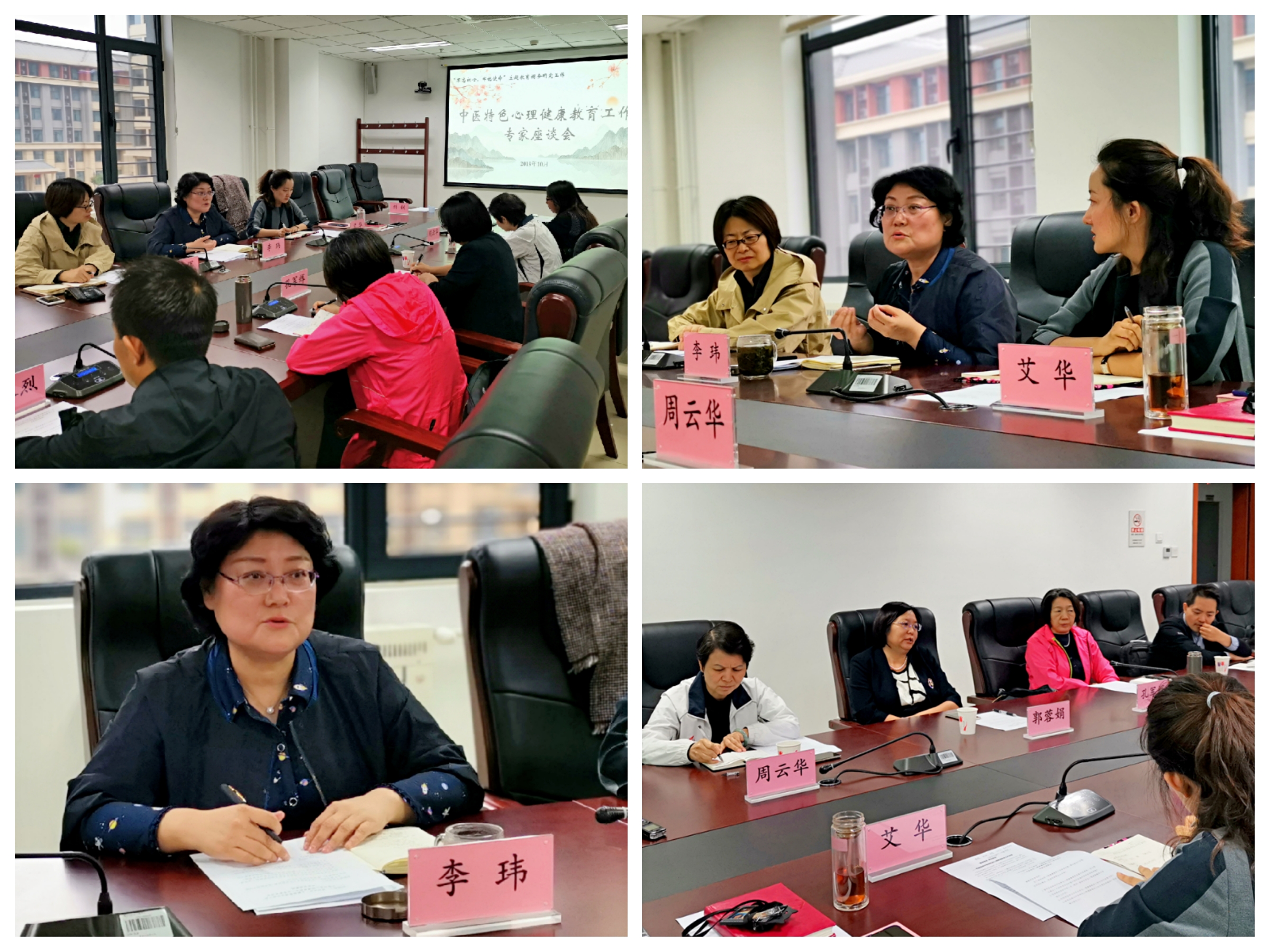 首先,学工部部长李玮介绍了我校心理健康教育工作及我校在中医特色心理工作方面的探索与实践。她指出,近年来,学生心理问题日渐突出,危机事件时有发生,如何发挥中医特色优势,将中医文化精髓应用到大学生心理工作中,助力学生身心健康成长,意义重大,希望几位专家为我校中医特色心理工作建言献策。
