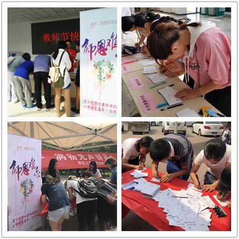 春风化雨育桃李,润物无声铸英才。2018年9月10日在我国第34个教师节来临之际,学工部在和平街校区、良乡校区、军训基地同时开展了庆祝教师节系列活动,在秋风轻抚,馨桂飘香的日子里为我校教师送上温馨祝福。
