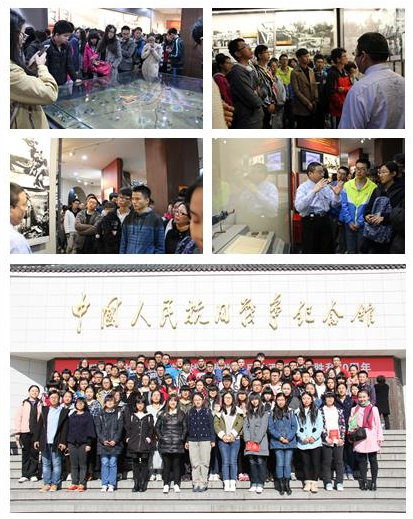 首先,围绕反法西斯胜利七十周年主题,学工部于10月31日组织所有新生班干部培训班的同学赴卢沟桥参观抗日战争纪念馆。纪念馆以其鲜活的史实资料,包括文字、实物、音视频等,为大学生红色教育展开了一本立体的教科书,以培养学生干部的民族自豪感、自尊心、自信心。
