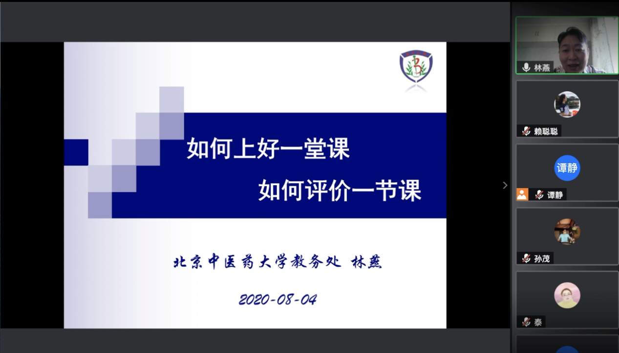为全面贯彻党的教育方针,深入落实全国教育大会精神,着力提升我校教师教学能力与水平,2020年8月4日,《大学生成才与职业发展》教研室举办2020年线上教学培训会,培训邀请我校教务处副处长林燕教授为《大学生成才与职业发展》教研室全体教师进行培训,会议由学生工作部副部长艾华主持。