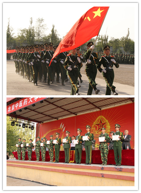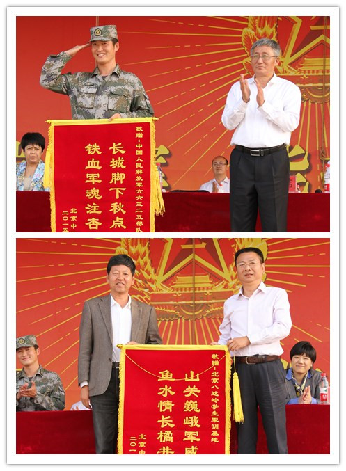 训练科目展示结束,军训团团长樊晓鹏少校对本次军训进行了总结。军训团政委学工部杜伟部长宣读了军训团嘉奖令,吴书记和翟校长亲自为获得红旗连队和军训优秀学员的集体和个人颁奖。为表达谢意,吴书记和翟校长还分别将写有“长城脚下秋点兵,铁血军魂注杏林”和“山关巍峨军威壮,鱼水情长橘井香”的锦旗赠予承训部队和军训基地。