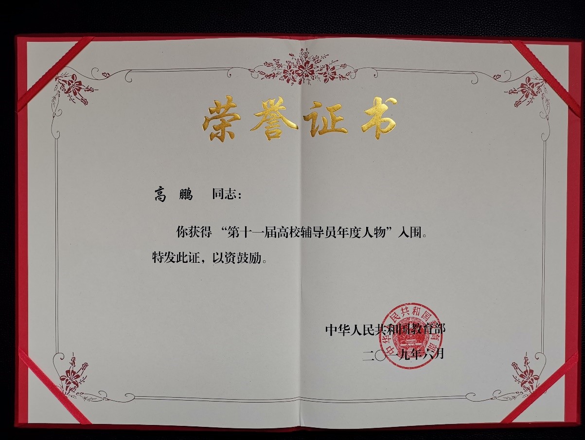 近年来,我校高度重视辅导员队伍建设,不断加强辅导员的理论学习和实践锻炼,通过校内外培训、辅导员沙龙、课题研究、职业技能竞赛等方式,帮助辅导员深入了解并掌握学生工作规律。此次高鹏老师入围“第十一届高校辅导员年度人物”,是对我校学生工作的一种肯定,更是一种激励,希望广大辅导员以高鹏老师为榜样,坚持立德树人,不断开拓创新,努力做一名有理想信念、有道德情操、有扎实学识、有仁爱之心的好老师,不断为培养社会主义事业建设者和接班人作出贡献。