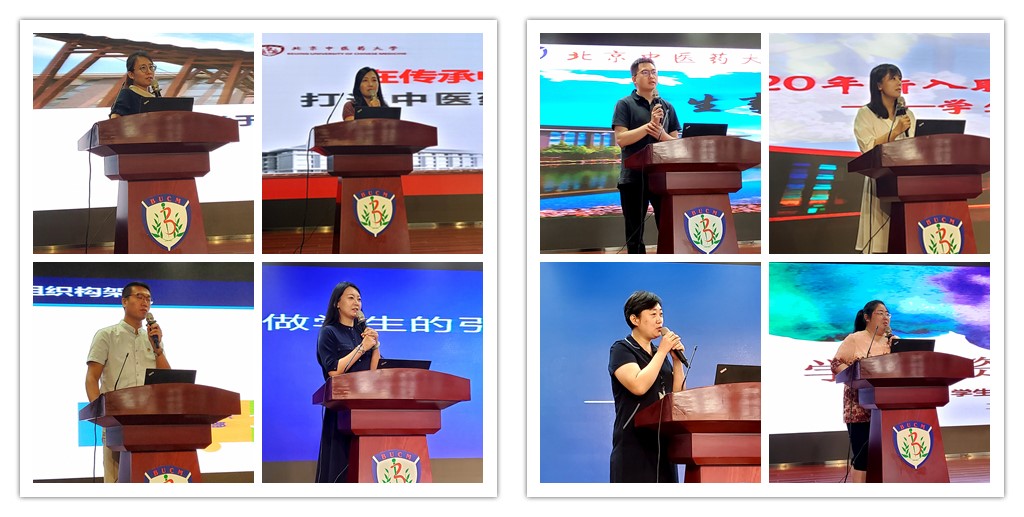 学工部、研工部、招就处、团委各部门相关工作人员做工作介绍。学工部学生事务管理科(武装部)张春泥老师介绍了学生安全维稳、少数民族学生管理、学生日常事务管理、国防教育、征兵工作、本科生劳动教育等相关工作;学工部学生教育管理科谭静老师从辅导员、班主任队伍建设、大学生思想政治教育、学业辅导、网络思政、课程建设和日常管理等方面做了具体工作介绍;学工部大学生心理健康教育与咨询中心张靖老师介绍了00后大学生心理特点,通过相关数据分析了我校大学生存在的主要心理问题,并对辅导员、班主任做好心理健康教育工作提出了意见和建议;学工部学生资助管理中心高笛老师从组织机构、队伍建设、制度建设、信息化建设、结构体系、政策解读等方面对我校学生资助管理工作做了介绍。研工部陈静漪老师以“关于培养有灵魂的研究生之思考”为题,做研工部相关工作介绍。招就处副处长宋萌以“在传承中创新,在双创中育人 打造中医药创新人才培养新高地”为题,为新入职辅导员、新生班主任介绍了学校创新创业和就业工作基本情况。校团委书记祝成业从组织构架、学生组织、校园文化建设、第二课堂育人体系、重点工作等方面介绍了学校团委相关工作。