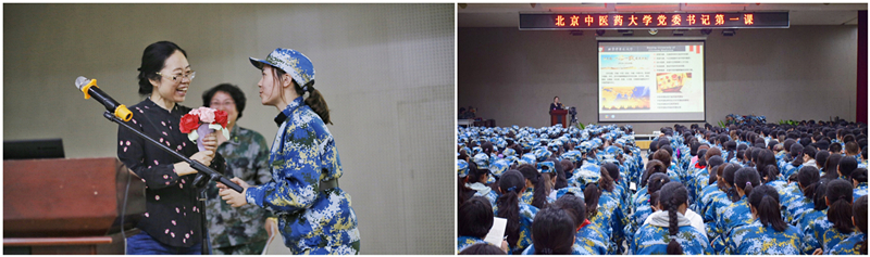 2018年9月11日晚,我校党委书记谷晓红以“濳悟岐黄、奋发有为,做中医药事业的实践者和接班人”为题,在军训基地为2018级本科新生讲授大学第一堂党课,活动由学工部部长李玮主持。