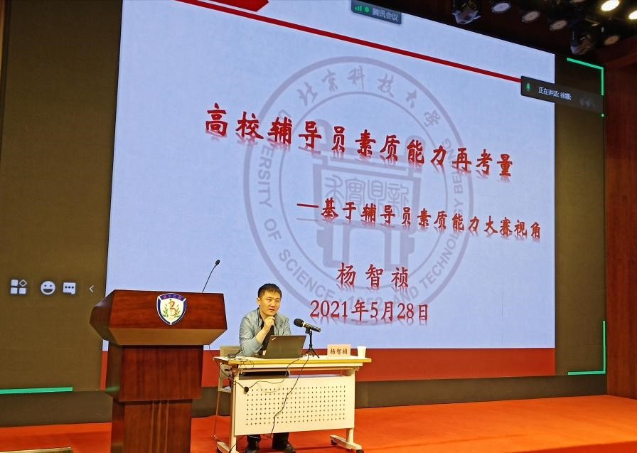2021年5月28日下午,由学生工作部举办的辅导员核心素养提升训练营在良乡校区教学楼学术报告厅举行,活动邀请第八届全国高校辅导员素质能力大赛三等奖获奖辅导员、北京科技大学经管学院杨智祯老师以“高校辅导员素质能力的再考量”为题做主题培训。学校50余名专兼职辅导员老师参加本次培训,培训由学工部副部长赵娜主持。