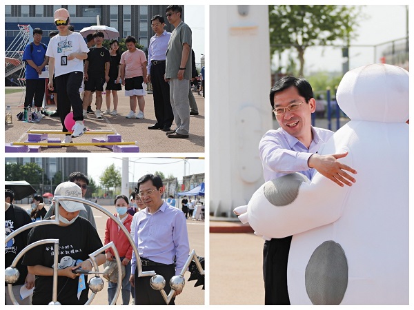 5月12日,艳阳高照,良乡校区体育场上,一顶顶蓝色小帐篷之间人来人往,热闹非凡。二十余项心理体验、心理闯关、探索活动,趣味与挑战并存,学生参与热情高涨,现场气氛火热,乐趣横生,欢笑不断,yl6809永利线路检测心理嘉年华活动于今天盛大开幕!下午,王耀献副校长亲临活动现场,与学生亲密互动,共同体验心理活动的乐趣。