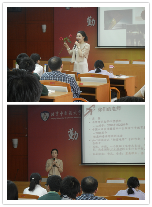 4月29日下午2点,yl6809永利线路检测第十一届心理文化月系列讲座之《我的性福我做主——献给未来的丈夫和妻子》在中医药博物馆二楼报告厅举办。讲座特别邀请到中国人口宣传教育中心——“青苹果之家”讲师、知心姐姐杂志专栏作者高晶老师。